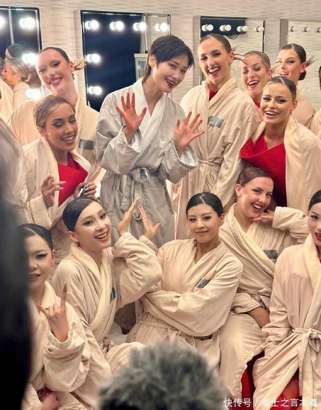 李宇春被淋得一身都是水,下台后还和舞伴们晒出了浴袍照。